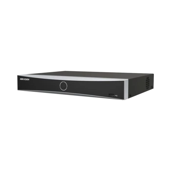 32-канальний мережевий відеореєстратор; H.265+ / H.265 / H.264+ / H.264; Вхідний потік 256 Мб/с, запис: 12 MP / 8 MP / 6 MP / 5 MP / 4 MP / 3 MP / 1080p / UXGA / 720p; Відеовиходи: HDMI, VGA; Відеоаналітика: розпізнавання облич, захист периметра. аудіо : 1/1, 2xRS-485, 1xRS-232, 2xRJ-45 (10/100/1000M); 3х USB, 4х HDD до 16ТБ, AC 100-240В, 20Вт, 445х400х75 мм